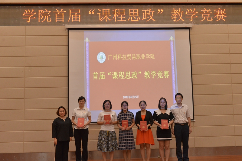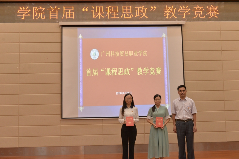 经过各学院的前期准备、选拔推荐,共10名专业课和通识课教师晋级到“课程思政”说课竞赛。参赛教师深入挖掘思政课程元素,结合专业特点从课程整体设计到单元设计进行了精彩说课展示。经过激烈角逐,竞赛最终评选出一等奖2名、二等奖3名、三等奖5名,并为5名教师授予广州科技贸易职业学院课程思政教学名师称号。
