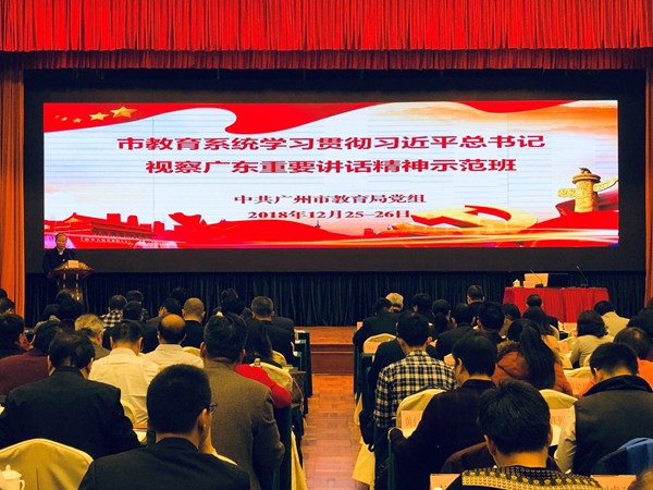 12月25日至26日,根据市委组织部的有关要求,结合学习全国教育大会精神等工作安排,成人直播 党组在广东大厦举办了市教育系统学习贯彻习近平总书记视察广东重要讲话精神示范班。局系统各单位党政负责人、专职副书记,部分基层党组织书记,民办学校学校代表,市教育局机关副处长级以上干部,约230人参加了示范班。本次培训主题鲜明突出,坚持问题导向,课程安排紧凑丰富。
