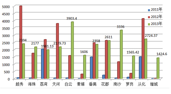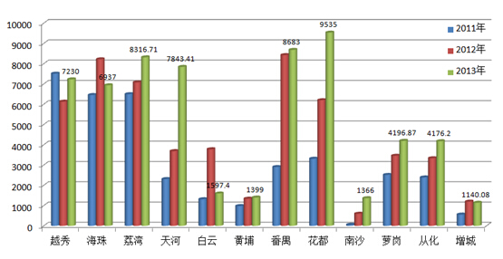 | 萝岗 | 7728 | 6924 | 8095 | 2835 | 5260 | 0 | 0 | 6605 | 104.75 | 100 | |