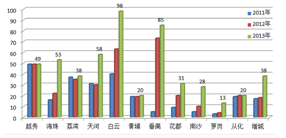 | 越秀 | 2011 | 4.3 | 3.8 | 1.1 | 0 | 64 | 7509 | 0 |