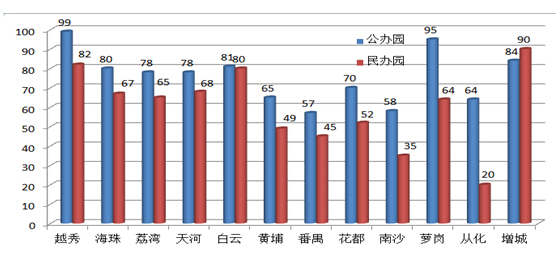 2.建立生均标准,保障经费投入。番禺区制定并落实各类幼儿园生均经费补助标准,对区属幼儿园每生每月按900元给予生均补助,集体办幼儿园每生每月按80元给予生均补助;普惠性民办幼儿园生均补助标准分别按省、市、区一级幼儿园、规范化幼儿园和未评级幼儿园进行划拨,分别为每月120元、100元、80元、60元、50元。白云区将幼儿园检查考核、年检结果作为政府财政资助、奖补的主要依据。区财政按市一级幼儿园与区一级幼儿园保教费平均数差额制定区内98所公办幼儿园生均经费拨款标准,对村集体办园和企业办园则按区财政与集体、企业5:5分担的办法拨付;对已达到平均水平以上的公办幼儿园,采取专项经费拨付的办法进行补助。这种方式有利于缩小公办幼儿园之间的差距。从化市制定并落实公办园生均250元/年的财政拨款标准,先行将30%向农村学前教育倾斜,余下70%再按生均下拨到各公办园,以增加农村薄弱园生均公用经费。萝岗区对取得普惠性民办园资格的幼儿园,按生均每年900元的标准对幼儿园进行补助。南沙区对按时通过年审的民办幼儿园,参照小学生预算内生均公用经费标准给予补助;对认定为普惠性民办幼儿园的,给予每生每年960元的补助。增城市以保障发展、创新发展为指导思想,制定了《增城市学前三年教育保教费补助实施办法》、《增城市公办幼儿园生均公用经费补助实施办法》,实施增城户籍学前三年儿童、公办园生均公用经费的补助计划。