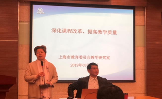 上海市教育委员会教学研究室主任徐淀芳(右一)做《深化课程改革 提高教学质量》的专题报告。