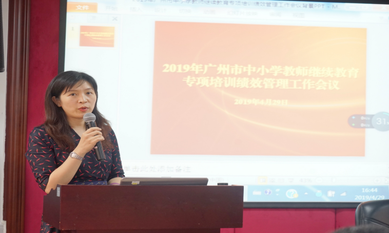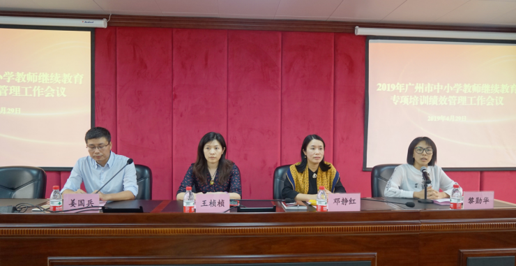 2019年4月29日下午,广州市师资队伍建设工作经费绩效管理工作会议在广州市教育评估和教师继续教育指导中心(以下简称“市教育评估中心”)召开,成人直播 师资工作处负责人王桢桢、市教育评估中心行政负责人邓静红、广东省公共事务与社会治理研究会会长姜国兵、相关区教育局、培训资格商等80人出席了会议。