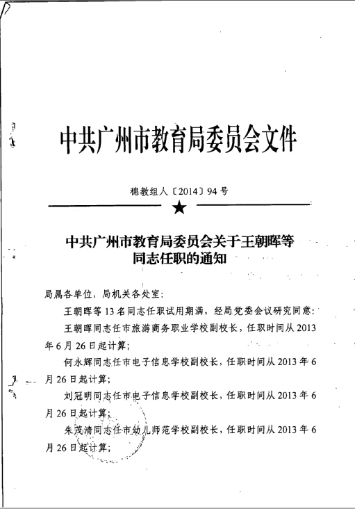 中共成人直播 委员会关于王朝晖等同志任职的通知